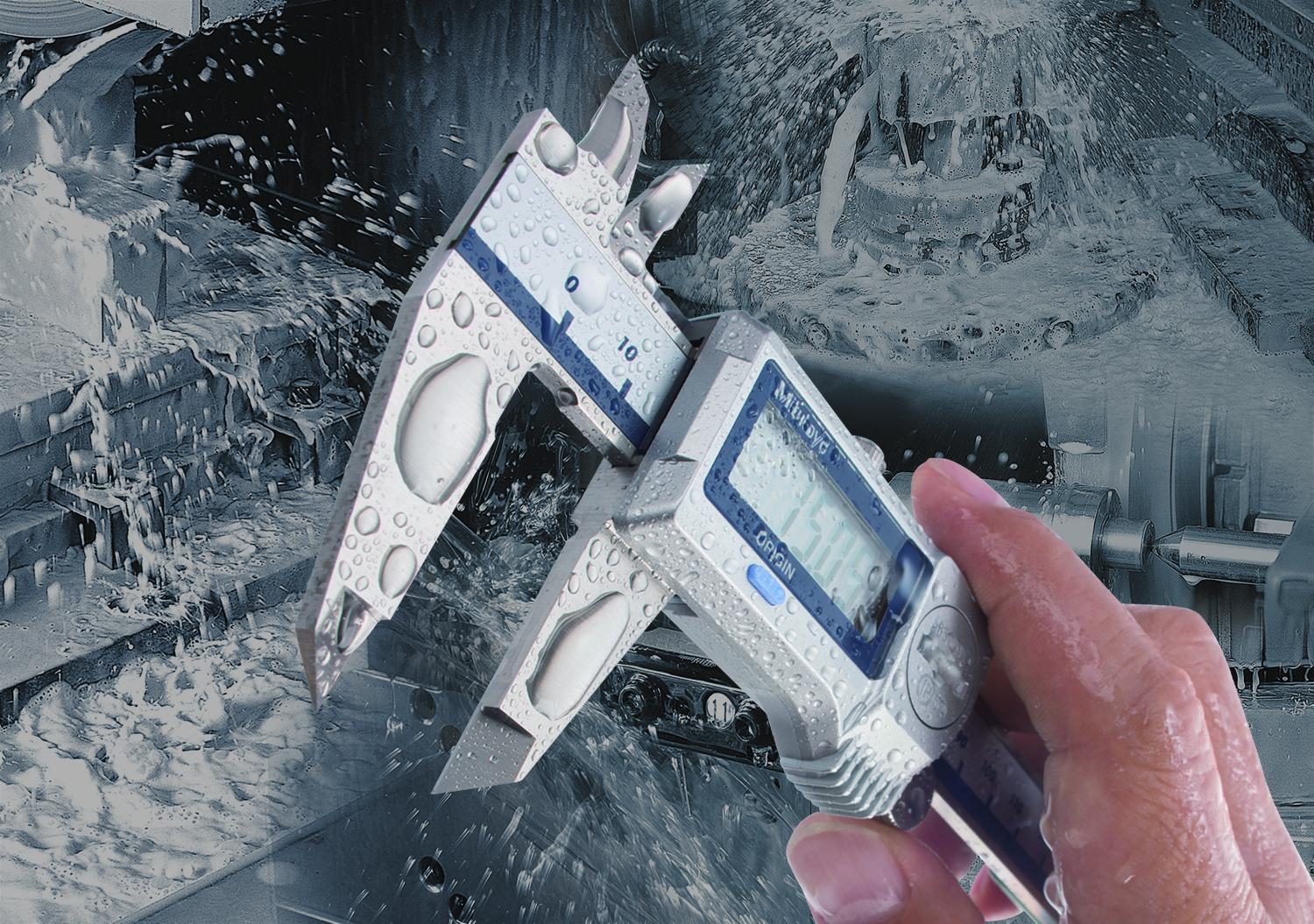 Mitutoyo IP67 ABSOLUTE Coolant-proof calipers can be used in workshop conditions exposed to coolant, water, dust or oil. 100% air-leak test ensures every caliper conforms to IP67.